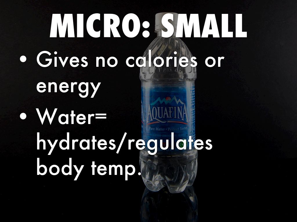 Water= hydrates/regulates body temp.