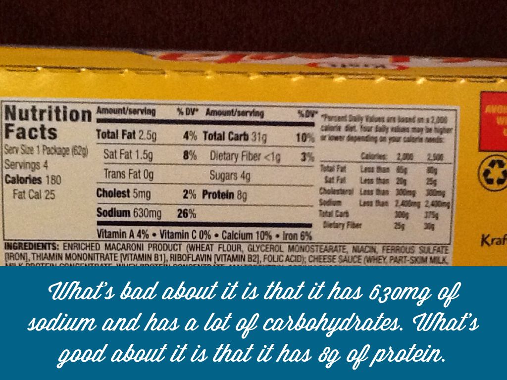 What's bad about it is that it has 630mg of sodium and has a lot of carbohydrates. What's good about it is that it has 8g of protein.