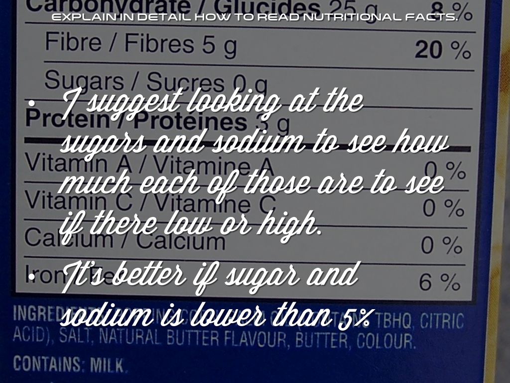 EXPLAIN IN DETAIL HOW TO READ NUTRITIONAL FACTS.