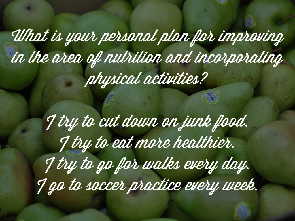 What is your personal plan for improving in the area of nutrition and incorporating physical activities?