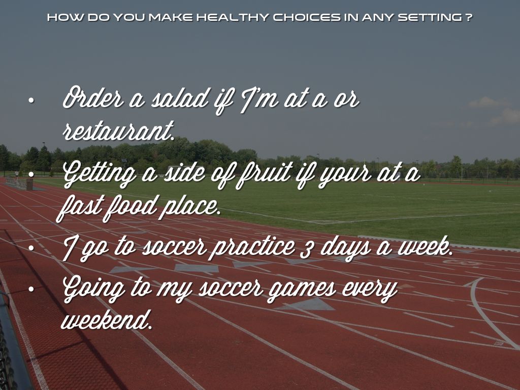 HOW DO YOU MAKE HEALTHY CHOICES IN ANY SETTING ?