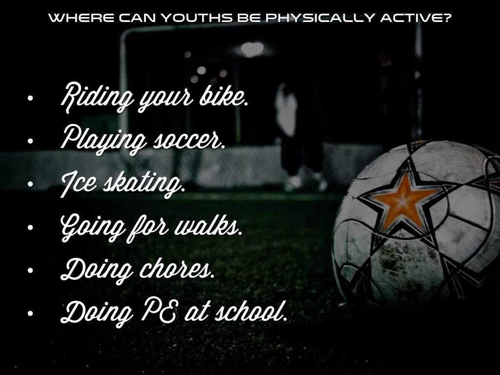 WHERE CAN YOUTHS BE PHYSICALLY ACTIVE?