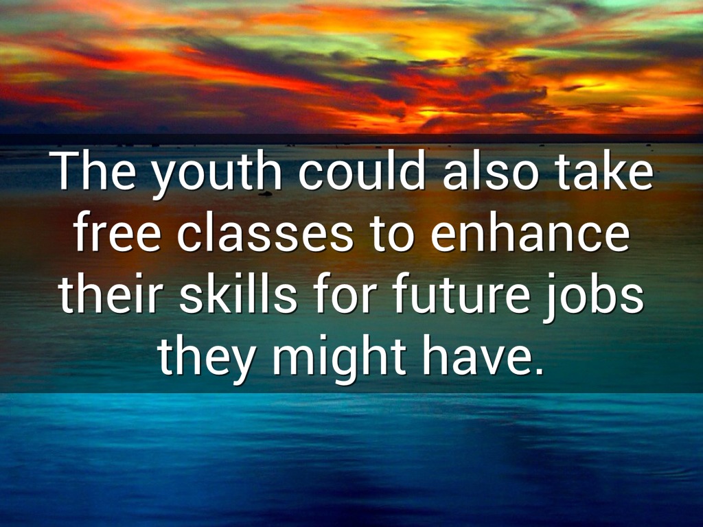 The youth could also take free classes to enhance their skills for future jobs they might have.