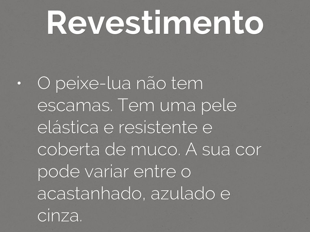 O peixe-lua não tem escamas. Tem uma pele elástica e resistente e coberta de muco. A sua cor pode variar entre o acastanhado, azulado e cinza.