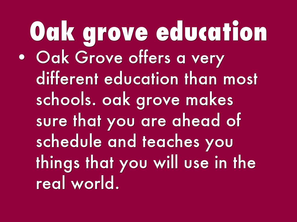 Oak Grove offers a very different education than most schools. oak grove makes sure that you are ahead of schedule and teaches you things that you will use in the real world.