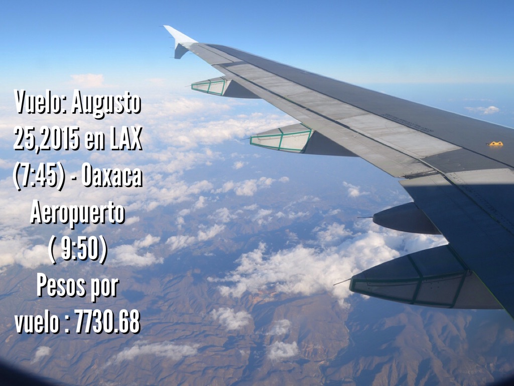 Vuelo: Augusto 25,2015 en LAX (7:45) - Oaxaca Aeropuerto ( 9:50) Pesos por vuelo : 7730.68