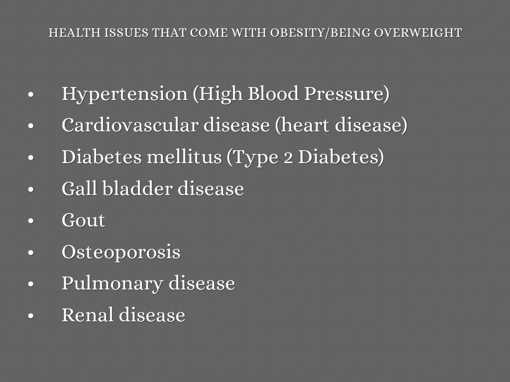 HEALTH ISSUES THAT COME WITH OBESITY/BEING OVERWEIGHT