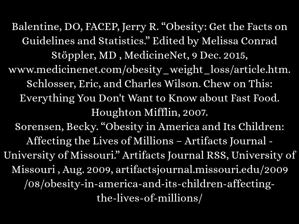 Sorensen, Becky. “Obesity in America and Its Children: Affecting the Lives of Millions – Artifacts Journal - University of Missouri.” Artifacts Journal RSS, University of Missouri , Aug. 2009, artifactsjournal.missouri.edu/2009/08/obesity-in-america-and-its-children-a...