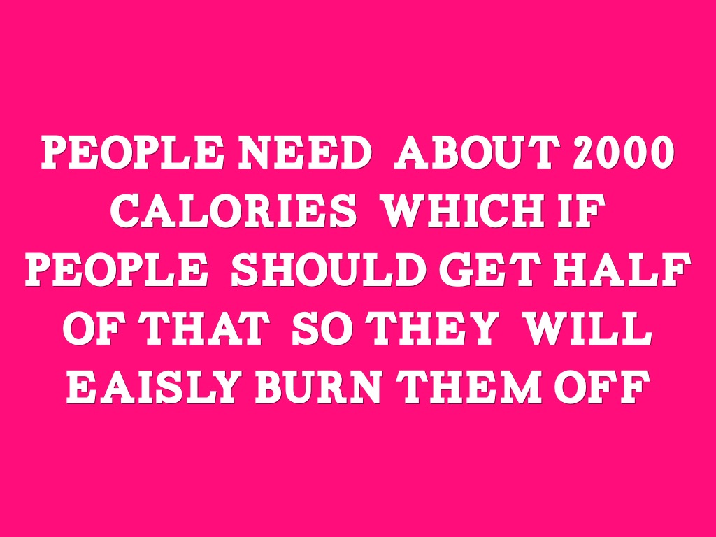 People need about 2000 calories which if people should get half of that so they will eaisly burn them off