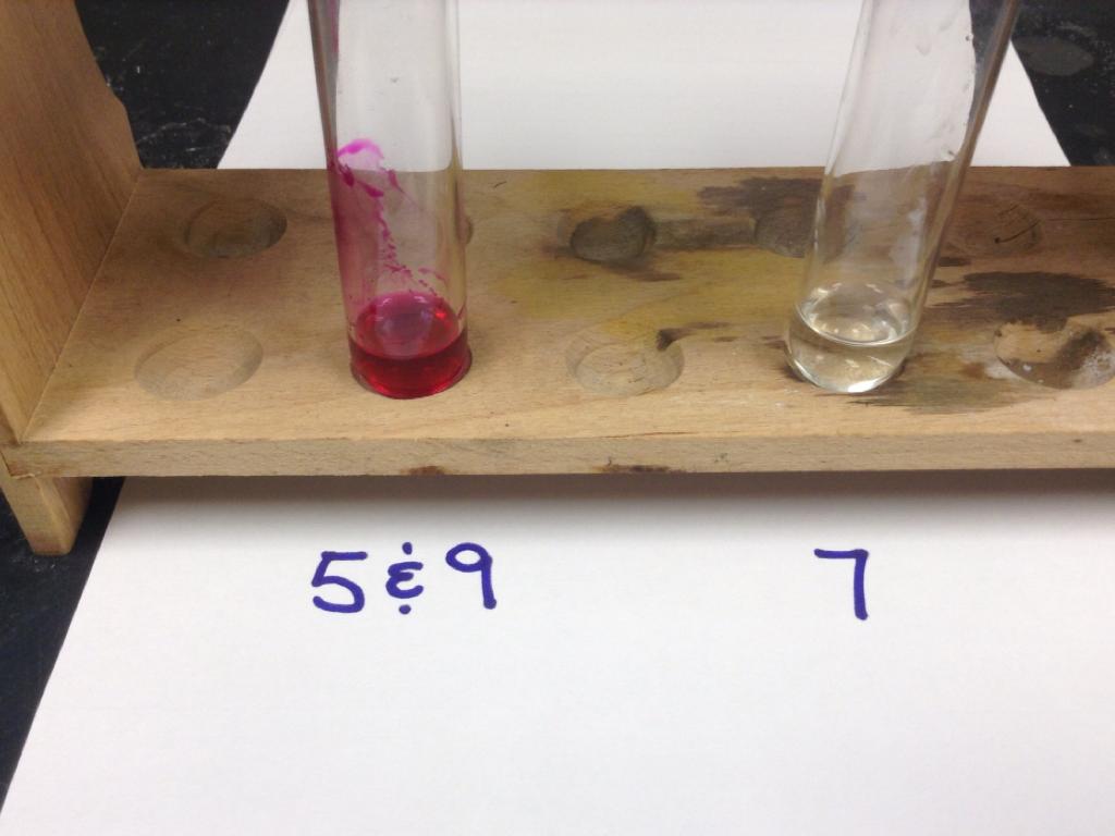 Rule: when phenolphthalein mixes with hydroxide (base) the solution turns magenta.