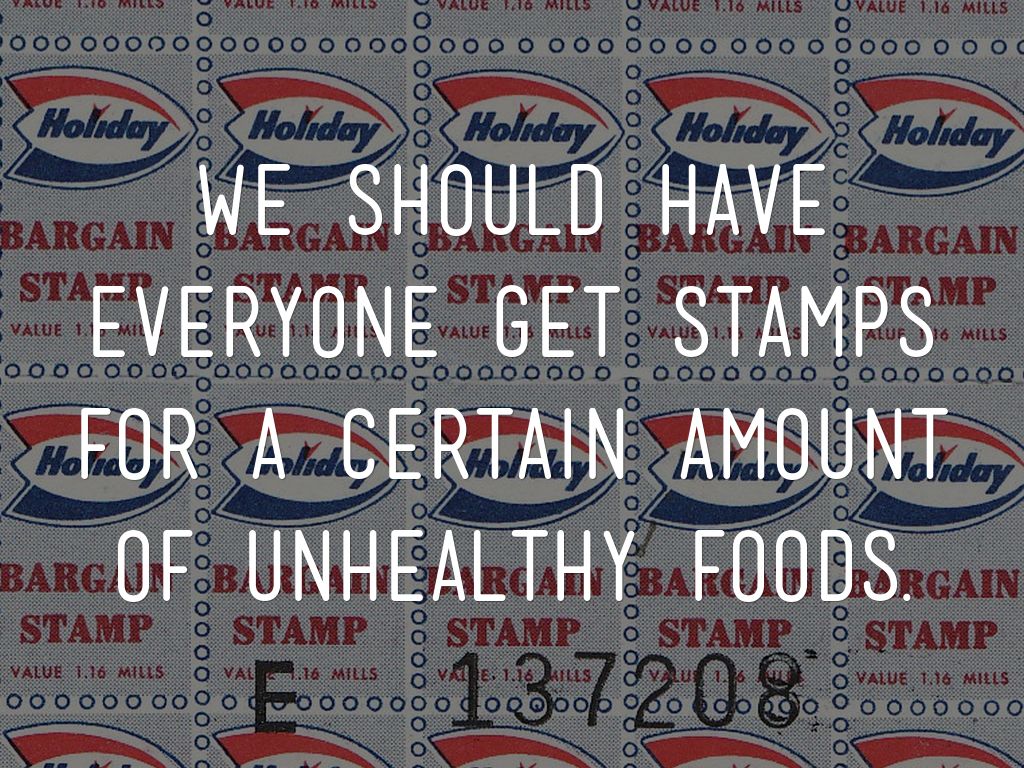 We should have everyone get stamps for a Certain amount of unhealthy foods.