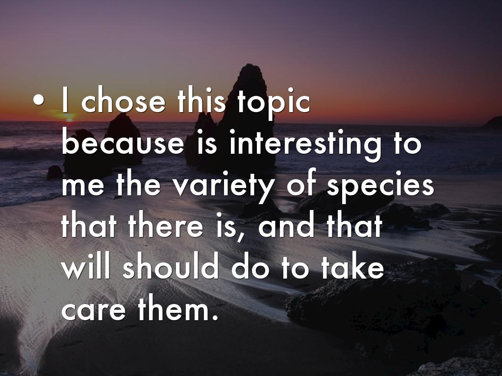 I chose this topic because is interesting to me the variety of species that there is, and that will should do to take care them.