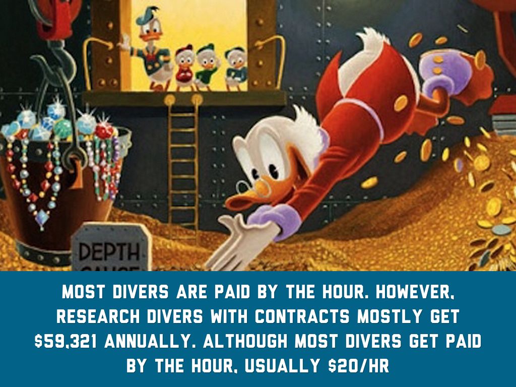 Most divers are paid by the hour. However, research divers with contracts mostly get $59,321 annually. Although most divers get paid by the hour, usually $20/hr