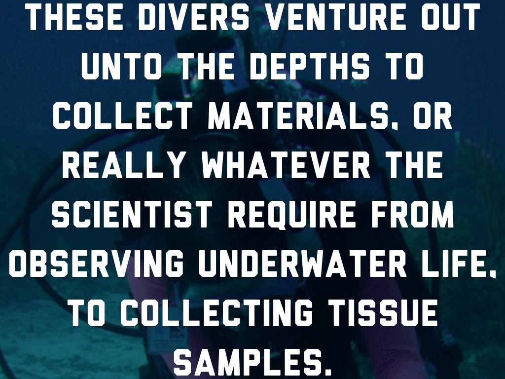 These divers venture out unto the depths to collect materials, or really whatever the scientist require from observing underwater life, to collecting tissue samples.