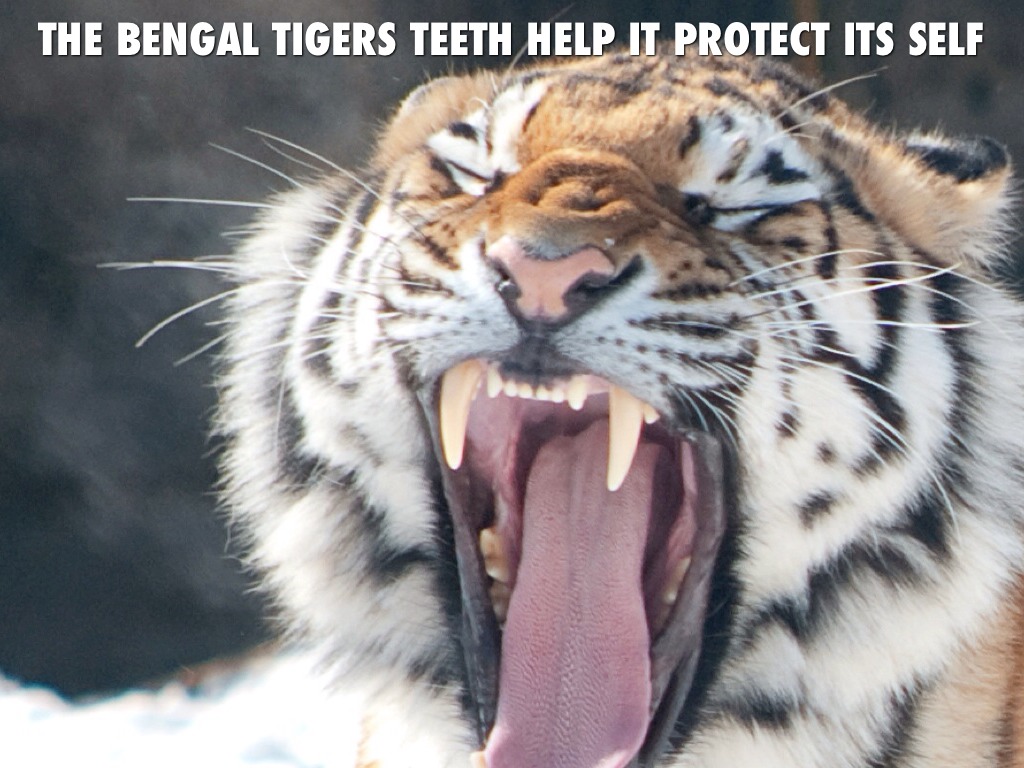 THE BENGAL TIGERS TEETH HELP IT PROTECT ITS SELF