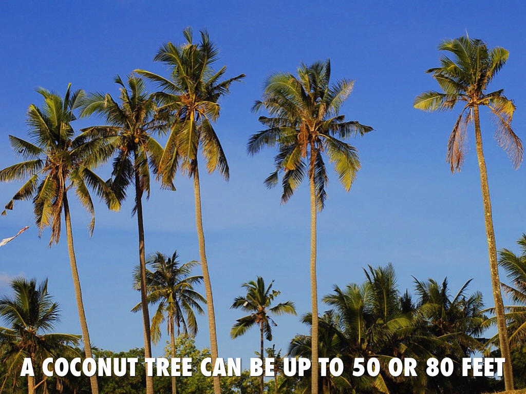 A COCONUT TREE CAN BE UP TO 50 OR 80 FEET