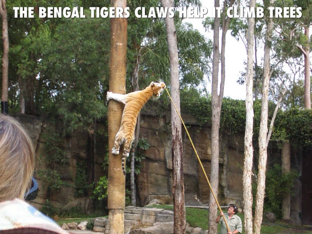 THE BENGAL TIGERS CLAWS HELP IT CLIMB TREES