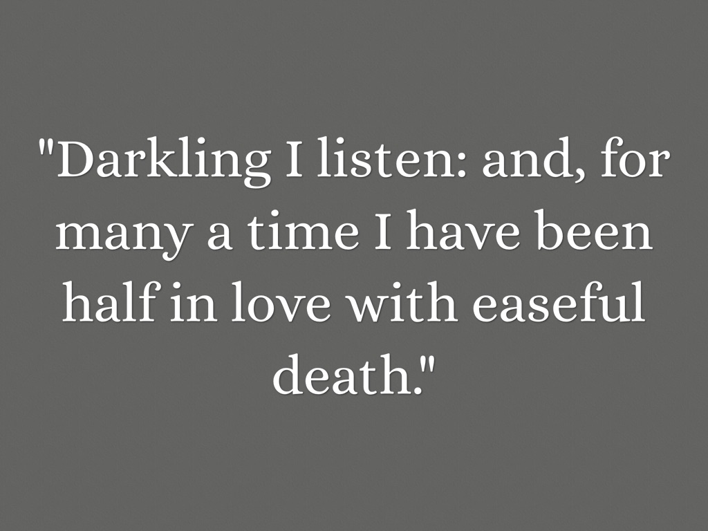"Darkling I listen: and, for many a time I have been half in love with easeful death."