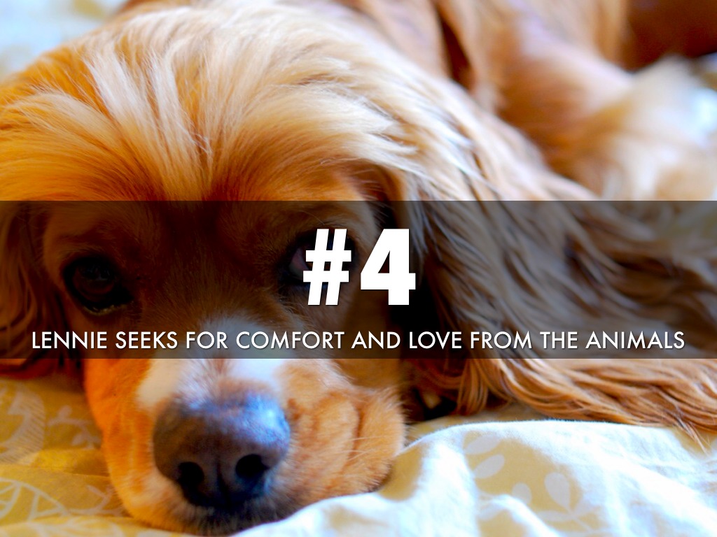 LENNIE SEEKS FOR COMFORT AND LOVE FROM THE ANIMALS