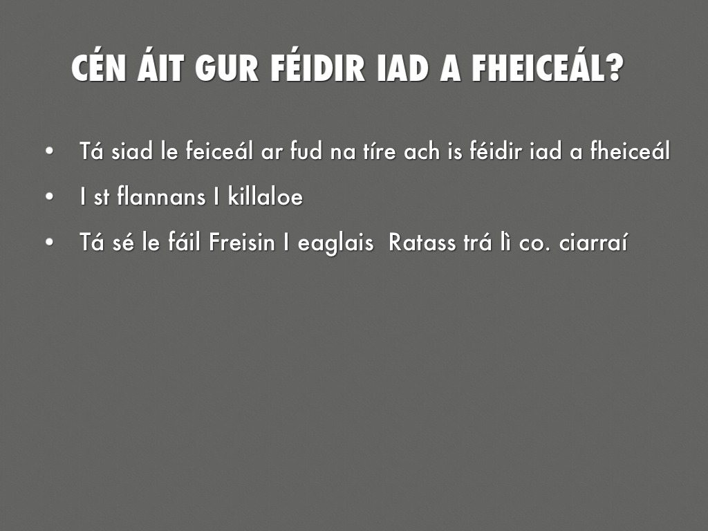 CÉN ÁIT GUR FÉIDIR IAD A FHEICEÁL?
