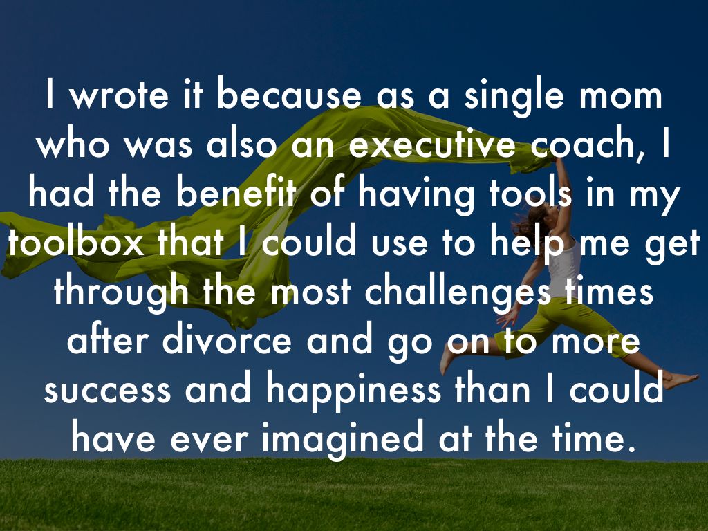 I wrote it because as a single mom who was also an executive coach, I had the benefit of having tools in my toolbox that I could use to help me get through the most challenges times after divorce and go on to more success and happiness than I could have ever imagined at the time.