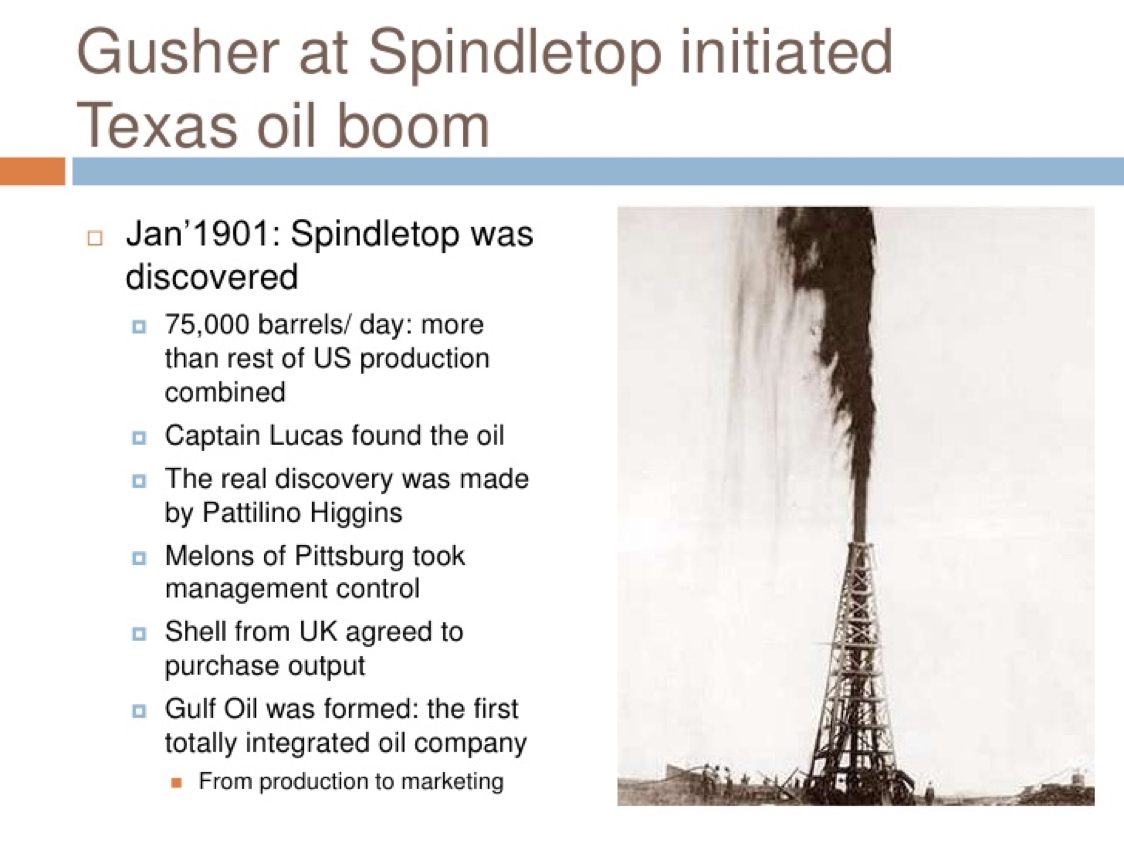 Engineer Anthony F. Lucas was the only engineer willing to help Higgin's drill for oil when they struck end oil he and Higgin's became very wealthy.