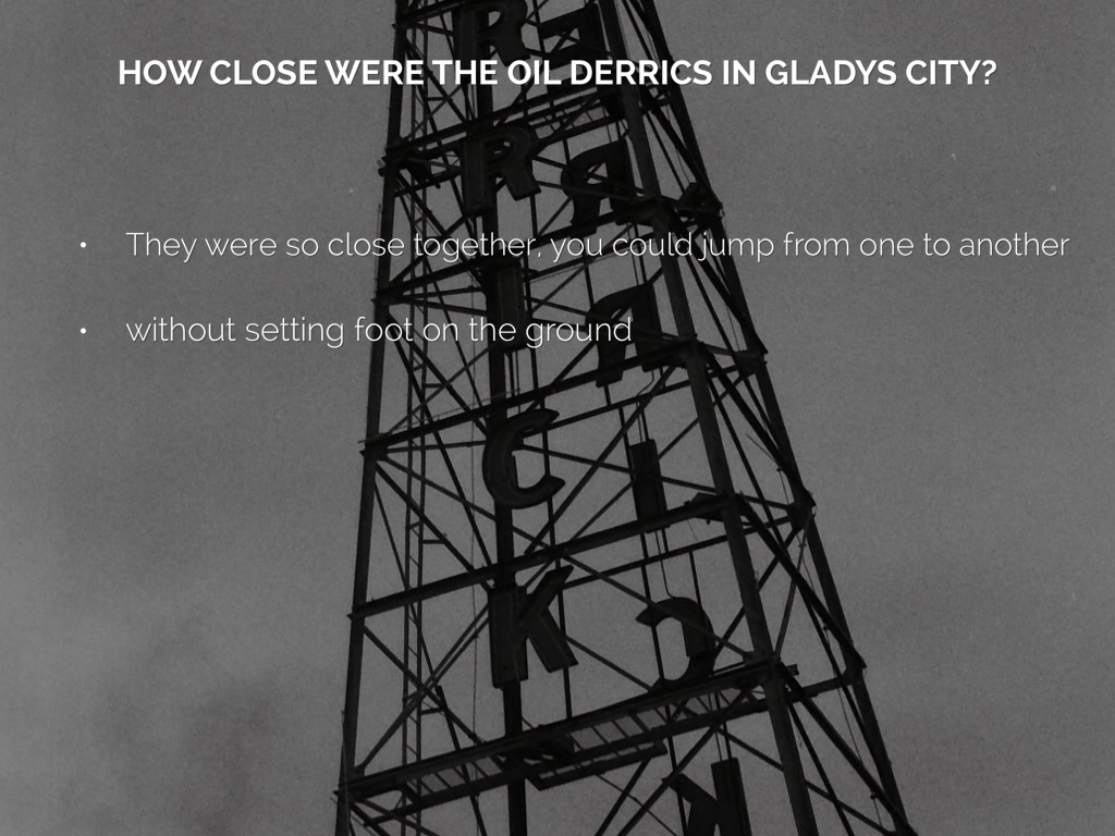 HOW CLOSE WERE THE OIL DERRICS IN GLADYS CITY?