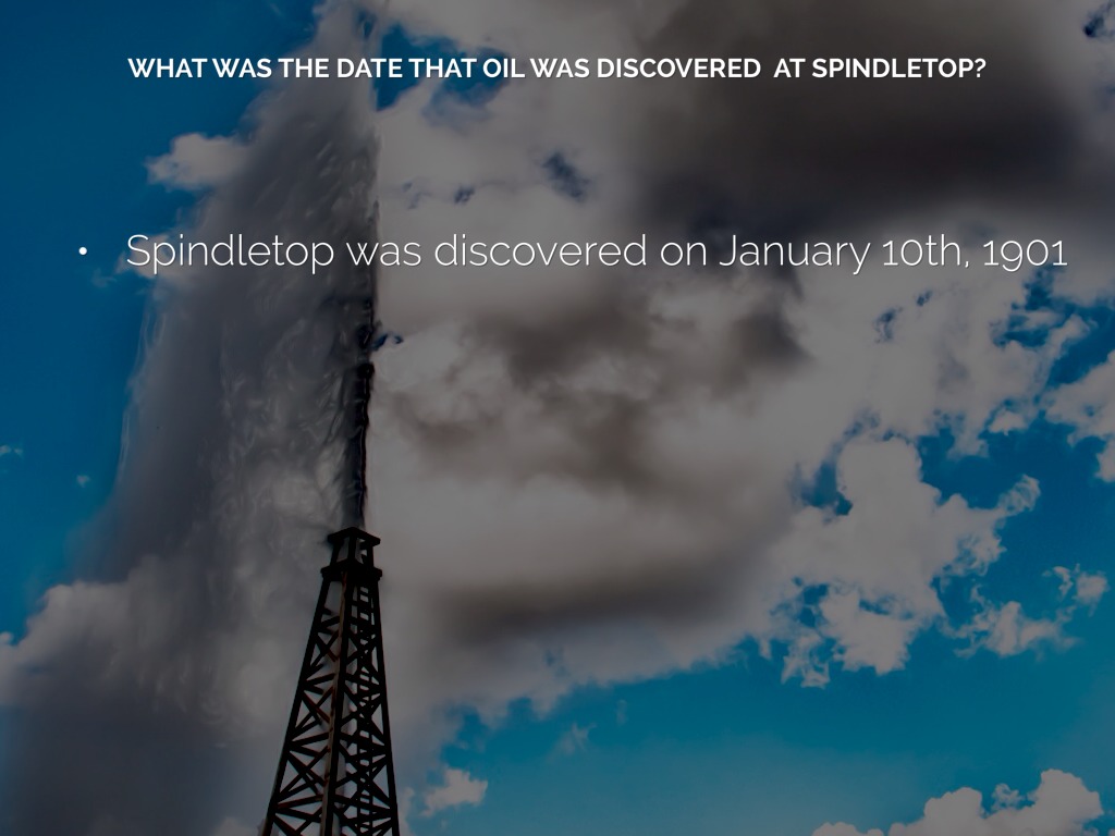 WHAT WAS THE DATE THAT OIL WAS DISCOVERED AT SPINDLETOP?