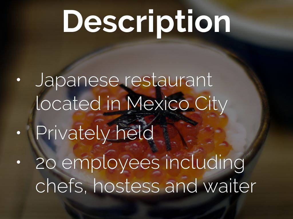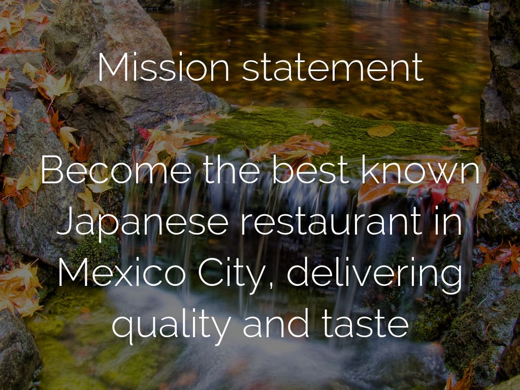 Become the best known Japanese restaurant in Mexico City, delivering quality and taste