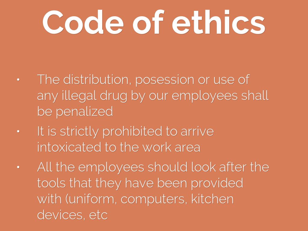 All the employees should look after the tools that they have been provided with (uniform, computers, kitchen devices, etc