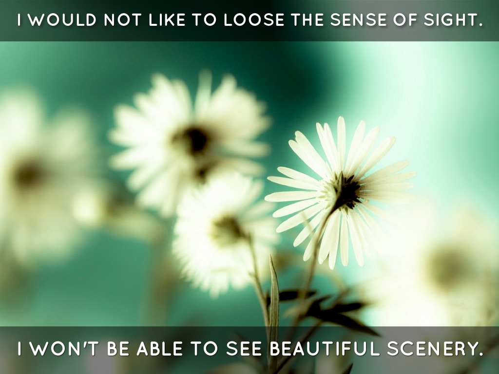 I WOULD NOT LIKE TO LOOSE THE SENSE OF SIGHT.