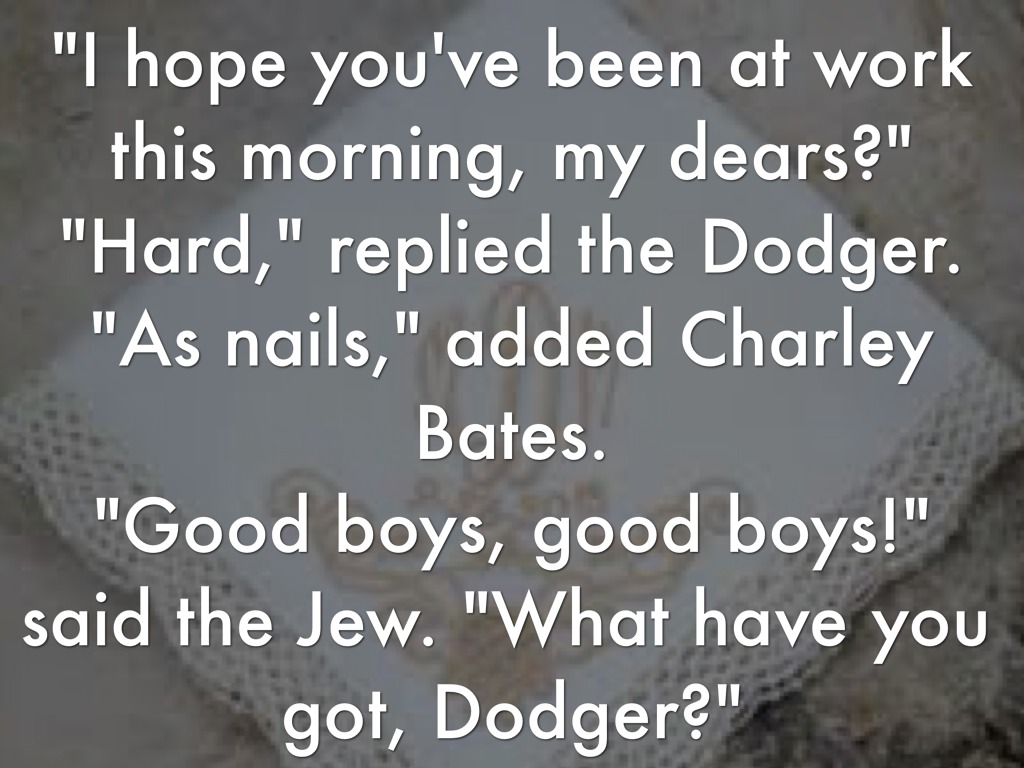 "Good boys, good boys!" said the Jew. "What have you got, Dodger?"
