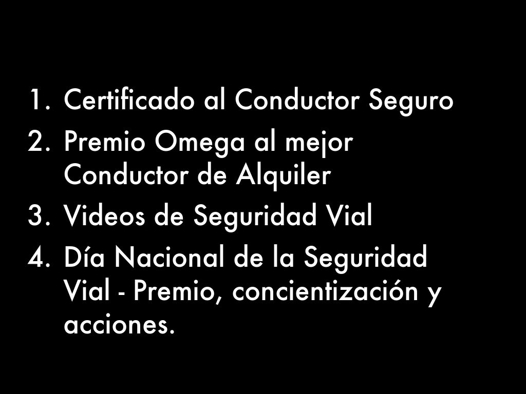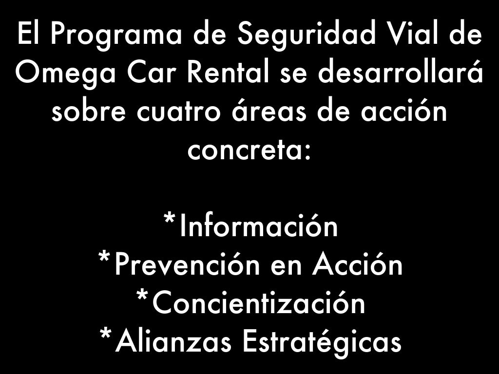 El Programa de Seguridad Vial de Omega Car Rental se desarrollará sobre cuatro áreas de acción concreta: