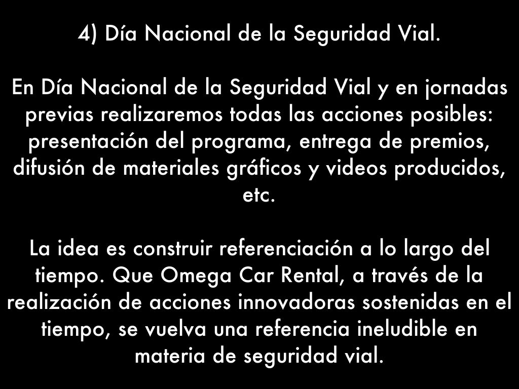 La idea es construir referenciación a lo largo del tiempo. Que Omega Car Rental, a través de la realización de acciones innovadoras sostenidas en el tiempo, se vuelva una referencia ineludible en materia de seguridad vial.