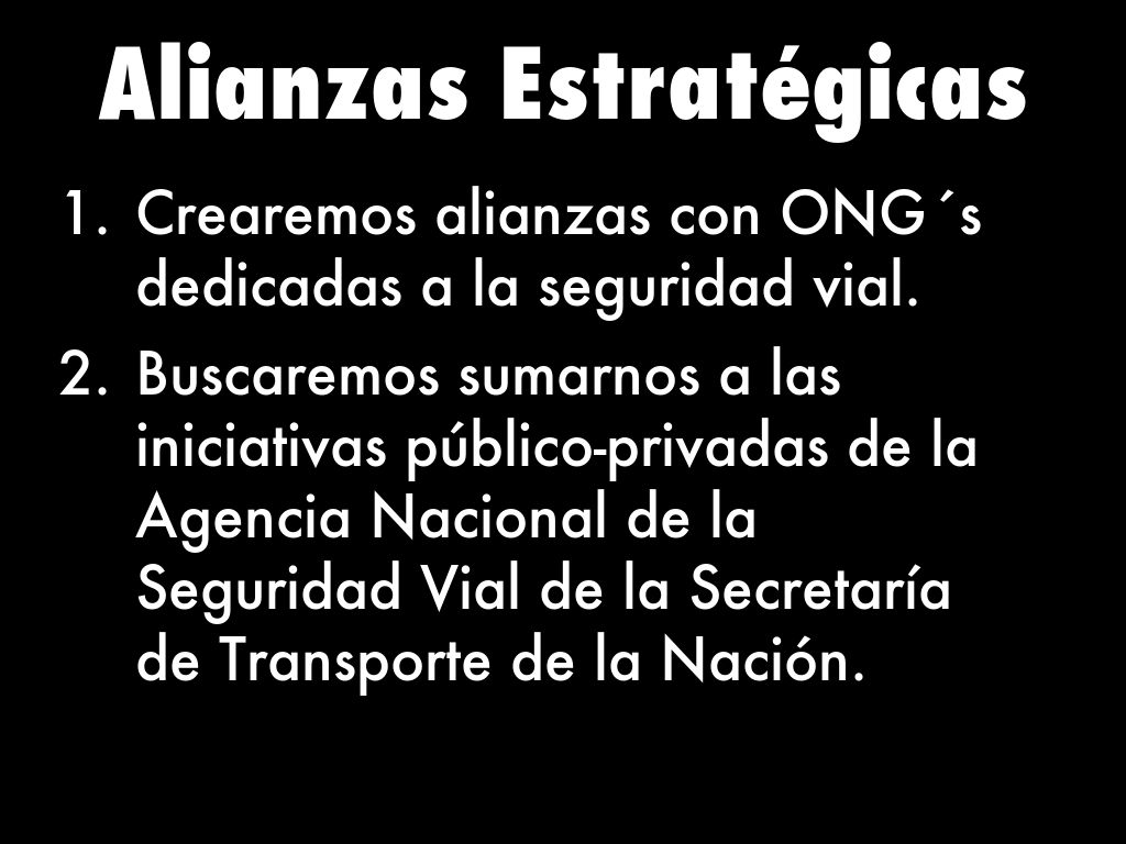 - Crearemos alianzas con ONG´s dedicadas a la seguridad vial.