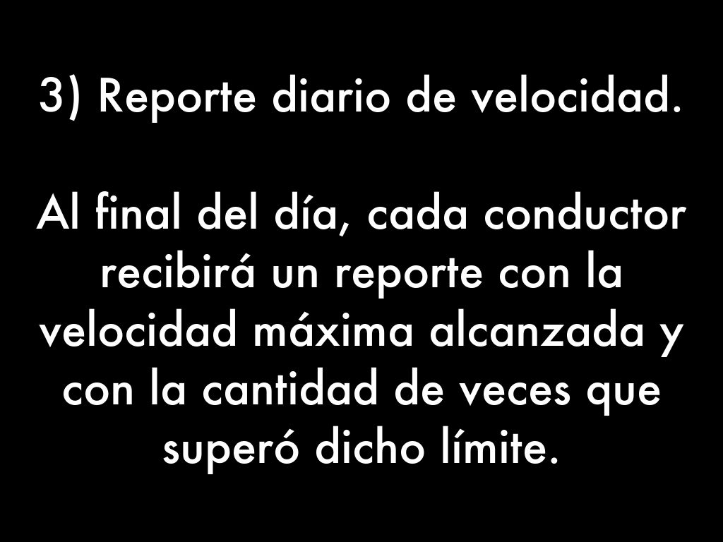 Al final del día, cada conductor recibirá un reporte con la velocidad máxima alcanzada y con la cantidad de veces que superó dicho límite.