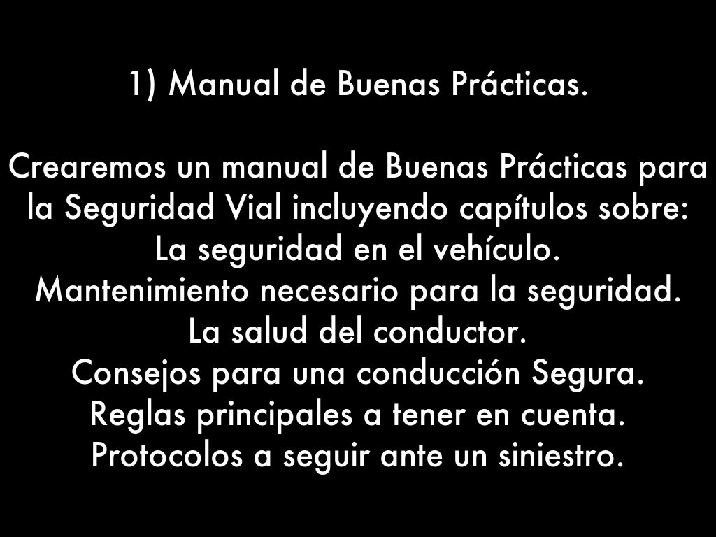 Crearemos un manual de Buenas Prácticas para la Seguridad Vial incluyendo capítulos sobre: