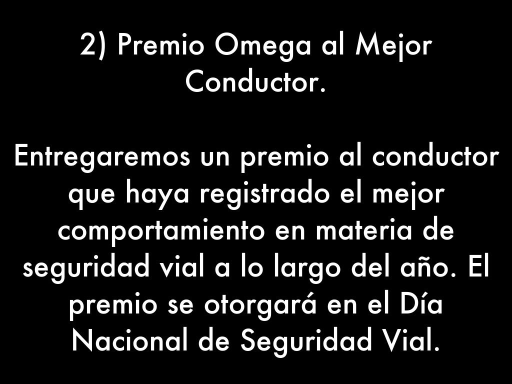 2) Premio Omega al Mejor Conductor.