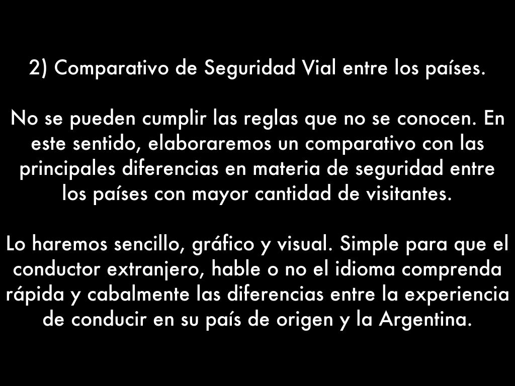 Lo haremos sencillo, gráfico y visual. Simple para que el conductor extranjero, hable o no el idioma comprenda rápida y cabalmente las diferencias entre la experiencia de conducir en su país de origen y la Argentina.