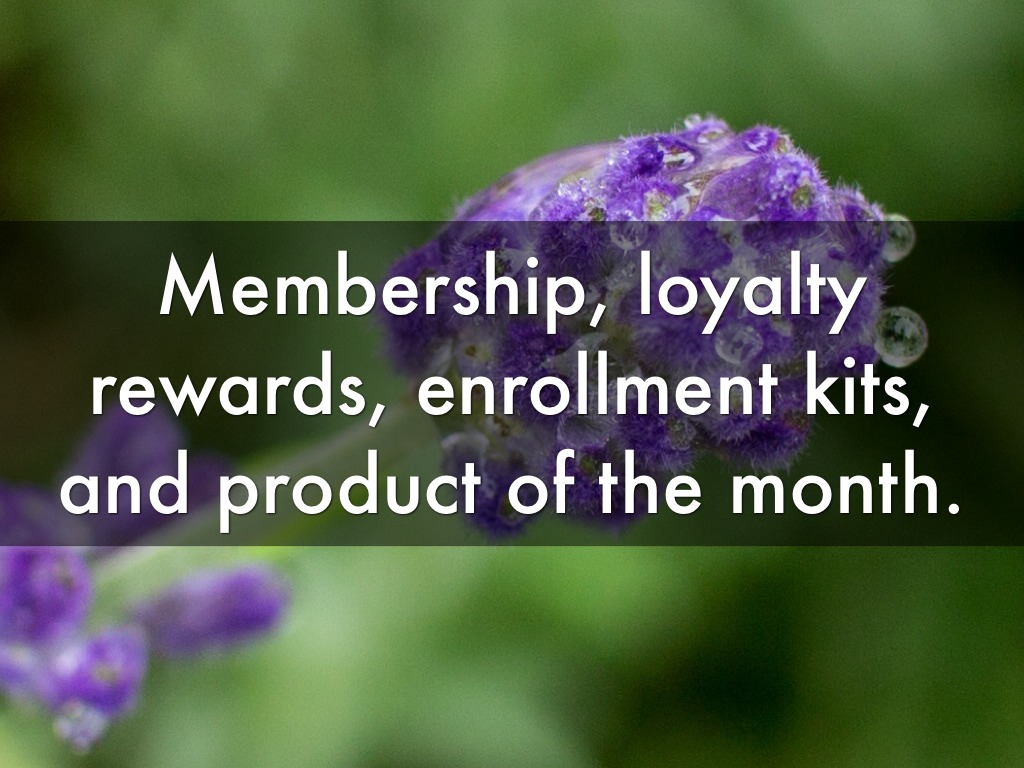 Membership, loyalty rewards, enrollment kits, and product of the month.