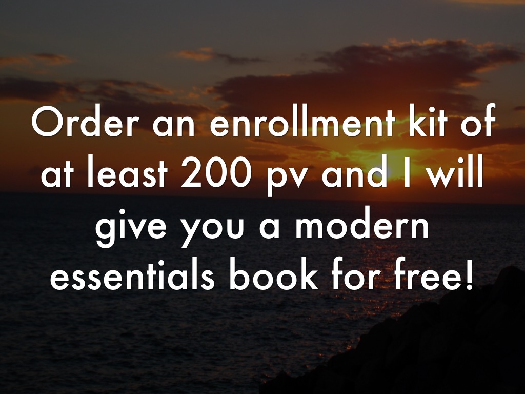 Order an enrollment kit of at least 200 pv and I will give you a modern essentials book for free!