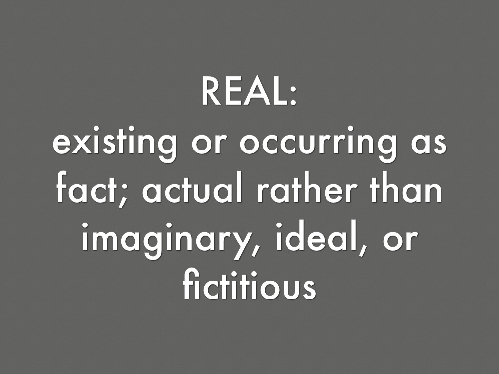 existing or occurring as fact; actual rather than imaginary, ideal, or fictitious