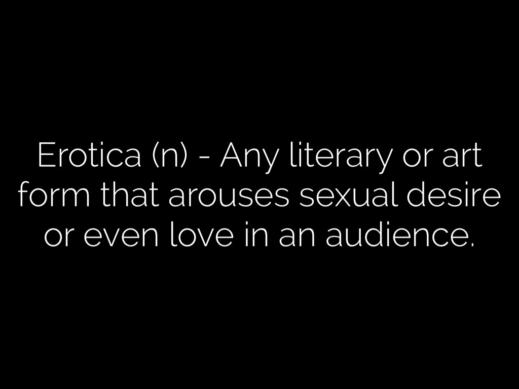 Erotica (n) - Any literary or art form that arouses sexual desire or even love in an audience.