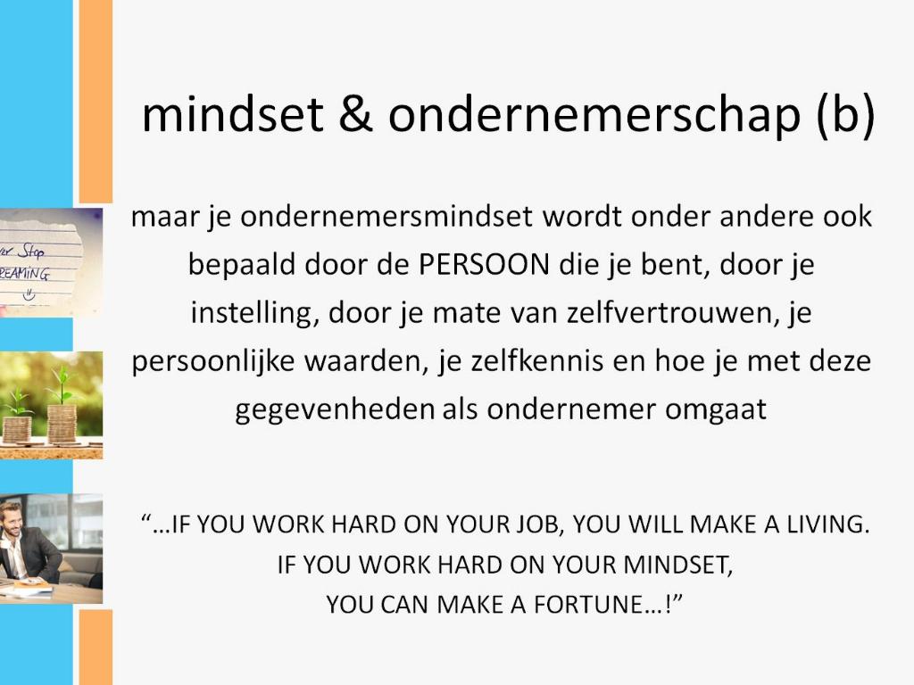 Ondernemen kun je leren - als je het maar graag genoeg wilt en er ook de nodige inspanningne voor wilt doen: het (verder) ontwikkelen van je MINDSET van het ONDERNEMEN.