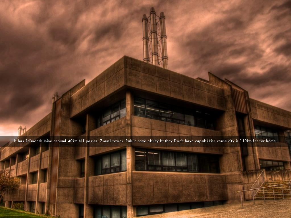 It has 2dimonds mine around 40km.N1 passes. 7samll towns. Public have ability bt they Don't have capabilities cause city is 110km far for home.