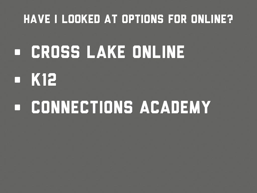 HAVE I LOOKED AT OPTIONS FOR ONLINE?