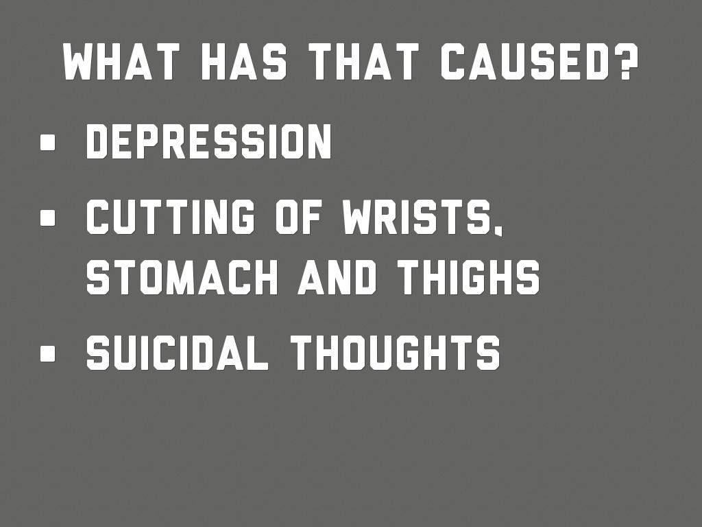 Cutting of wrists, stomach and thighs