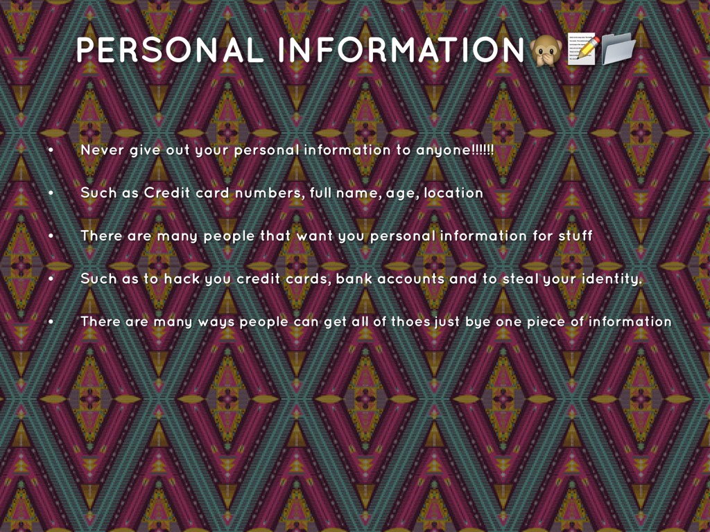 Never give out your personal information to anyone!!!!!!
