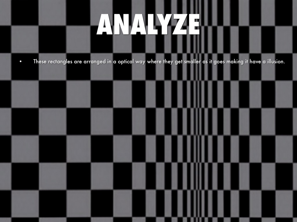 These rectangles are arranged in a optical way where they get smaller as it goes making it have a illusion.