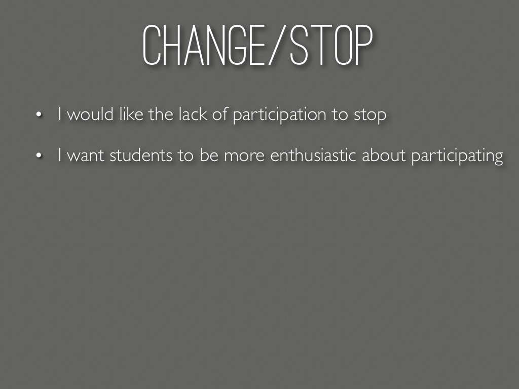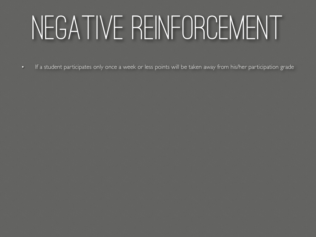 For negative reinforcement the kids lose participation points toward their grade on a weekly basis